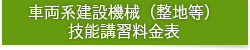 ◎講習は全4コース 大型特殊免許取得者は2日間コースで修了。 2日間(11時間)コースは、毎月第3木曜日が講習初日です(要予約) |