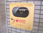 2階廊下にAEDを設置しました。 応急救護処置の学科では同機種のトレーナーを使用しますので、より安心です。