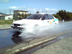 特殊工法によるアイスバーンの施設で、夏期教習生に対しても冬道運転技能の習得ができます。